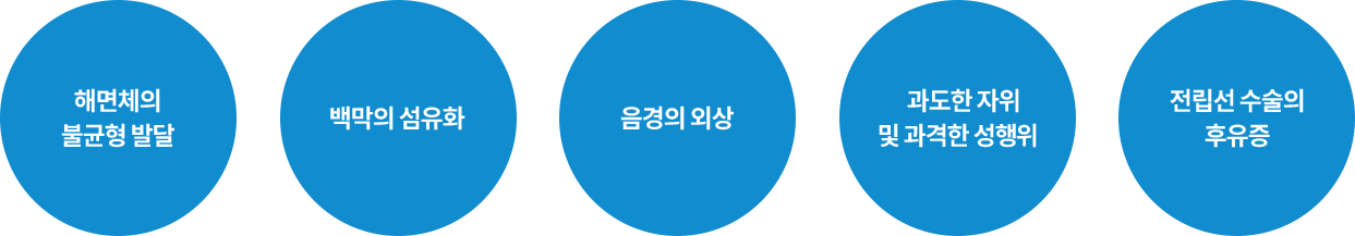 평상시에는 큰 불편이 없더라도, 발기가 되었을 때 음경이 한 방향으로 휘게 되면서 통증 및 발기력 약화 등으로 성관계에 어려움을 겪을 시 수술적 치료의 대상이 됩니다.