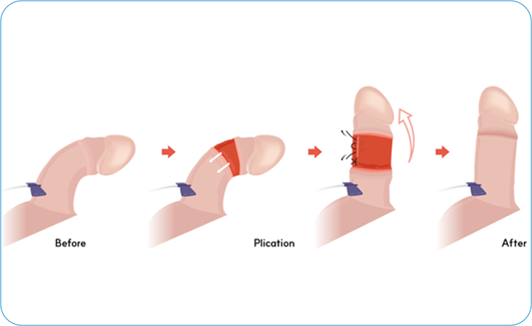 실제 발기 상태에서 만곡을 교정합니다. 수술 후 음경 길이가 일부 줄어들 수는 있지만,